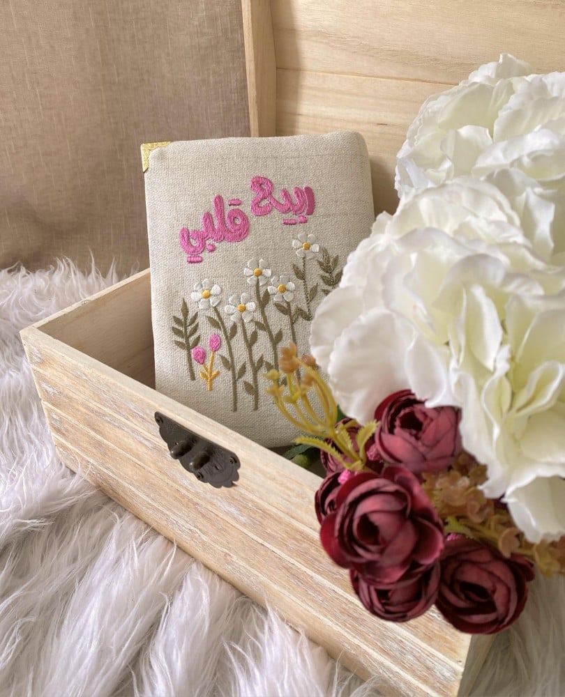 مصحف مطرز أنيق وممبزبقماش لنن ناعم وعصرياللون (بيج)بتطريز ناعم (ربيع قلبي)حجم المصحفالطول 20 سموالعرض 14 سم (حجم المصحف الاخضر المتعارف عليه)الخط واضح من الداخل( قد تختلف درجات الألوان بسبب الإضائة والتصوير و اختلاف شاشات الأجهزة)